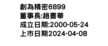 創為精密股價 OTC:6899