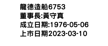 龍德造船股價 TPE:6753