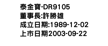 泰金寶-DR股價 TPE:9105